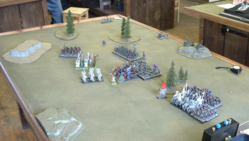 The first game of the day was a warm-up and didn’t count. I fought against a large undead army with a mixed force that included something of everything.This is early on where most stuff is still on the table.
