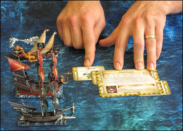 This looks pretty much like what I’d expected: a simple roll hits, roll saves kind of mechanic with a bunch of cards thrown in for good measure. It’s light and fluffy and sounds very random indeed, but a bit of a laugh as long as you don’t take it too seriously. A sort of Wild West barroom brawl of a game, with the varied characters being ships instead of cowboys.