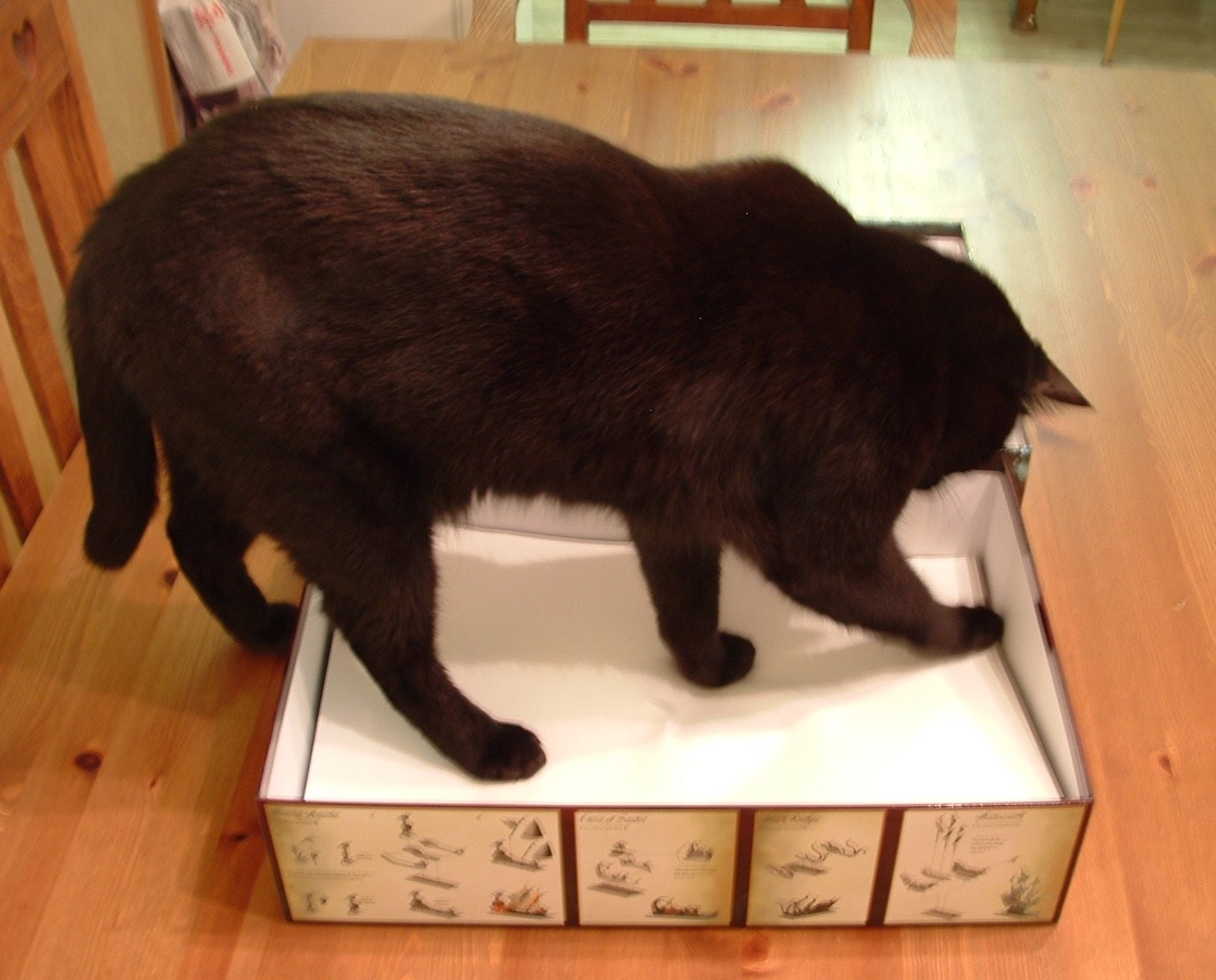 And now, as I’ve taken all the plastics out of the box, I can finally get some help from my beautiful assistant, Mojo. He thinks there’s something lurking under this sheet of card, and as it happens he’s right.