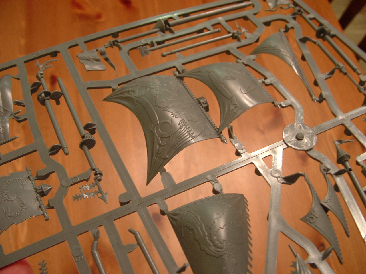 Then we get into the ships. The sails all have raised detail to help you paint the fancy designs.