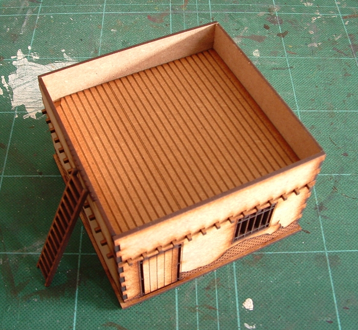 The roof is designed to be left loose so that it lifts off and you can get inside. The rest of the jail could be glued to make it a little more solid, although it is designed in such a way as to not need glue. The chaps I spoke to on the stand at Derby suggested that you could actually leave them unglued and then dismantle the buildings after play so that they packed away into a small space for storage or portage.