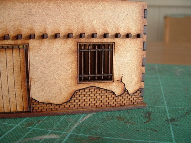 Obviously these buildings are supposed to be painted, and I’ll get round to that. Not sure what the best approach is as this is my first HDF building. I don’t want to use so much water that it warps. Mind you, on the plus side, the building is pretty sturdy once it’s assembled, and if glued it will be even more so. Unless I stick it under the tap I doubt that I’ll have much problem with warpage.