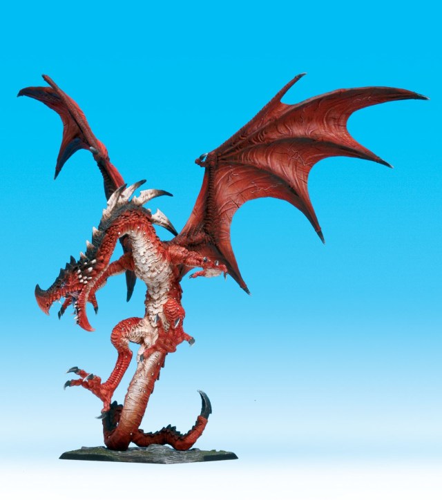 Hi Robey! I looked at all those (and many more smaller ones), and I’ll tell you why I chose this one. The Forge World Fire Dragon is nice, though I’m not very keen on the pose. I’ve not had a chance to compare it close up unpainted (comparing painted to not is a bit unfair), but I think the detail is better on the Titan Dragon. It’s not horrible, or sloppily made, it’s just a bit, well, tame looking in comparison. The Titan Dragon pose says to me that you’re getting a facefull of fire, then he’s going to land on you and stomp your aches into the dust. And then he’s going to get really nasty. The GW Fire Dragon looks like it’s all a bit much effort. Whoosh there’s the fire, but the whole stomping thing was a bit last century, and can he just curl up with a nice virgin by the fire?