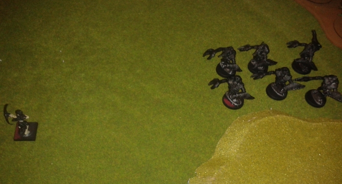 The game was on the line as we started turn six. If my Skeleton Horde could clean out the last four Princelings before Graham could hunt down the last Skeleton Archer then I would win. If he got to the archer before I could take the Princelings down then the game was his. With that in mind he began by activating the Black Warriors and sending them towards the archer though they were still well out of range with their Spit Acid attack.