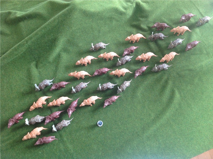 Plastic dinosaurs are usually badly made, the wrong scale to game with, or (often) both. These ones are rather lovely pachyrhinosaurs from the film Walking With Dinosaurs 3D (Warning! If you are more than 5 year’s old you may want to turn the sound off on that trailer).