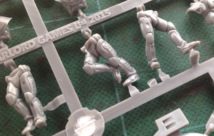 Having seen some of these assembled when I was at the Derby show, I know that they look pretty good when they’re put together. At least, I thought so. There were others who thought that their legs looked a bit off. I couldn’t see that myself, and I rather like their non-“heroic” scaling too. Certainly it’s a point of difference from 40K.