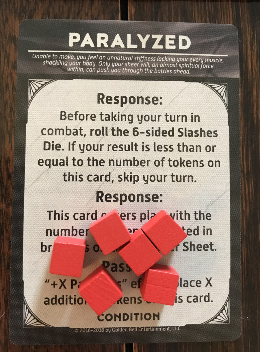 We hear a lot about Unbroken, and most of it’s to do with Golden Bell and their dubious antics. I wanted to step away from all that baggage for a moment and see what Unbroken was like as a game. I backed it on Kickstarter, and although I watched some of Golden Bell’s car crash of mishandling at the time, I wasn’t really paying enough attention to be very upset. The game was inexpensive, and I’ve had other Kickstarter creators fleece me for much larger amounts. However, all that shenanigans has had an undeniably bad impact on the way the game itself is perceived – you just have to look at the 5.9 rating on BGG to see that.